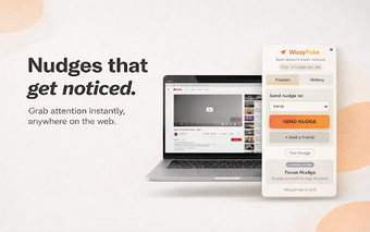 WizzyPoke är en gratis webbläsartillägg för Chrome som låter användare skicka skakande meddelanden till sina vänner för att få deras uppmärksamhet. Med ett enkelt system för att para ihop med vänner med en 6-siffrig kod kan användare när som helst nudga sina vänner när de ignorerar meddelanden. Tillägget erbjuder en skärmshake-effekt och ett ljud för att säkerställa att meddelandet inte går obemärkt förbi. Det fungerar på populära plattformar som WhatsApp Web, YouTube och Netflix, vilket gör det mångsidigt och användbart för att fånga uppmärksamhet oavsett var användarna befinner sig.